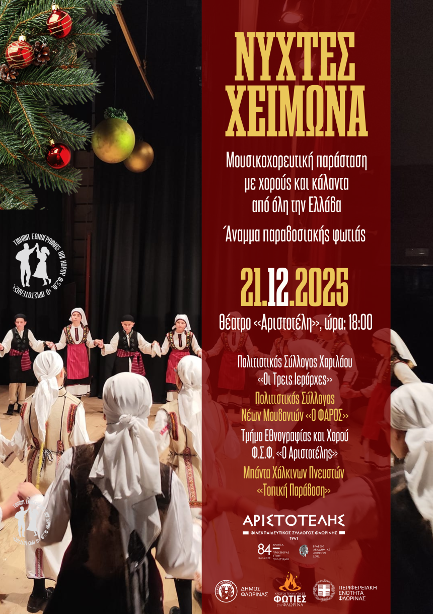 Το Τμήμα Εθνογραφίας και Χορού του Φ.Σ.Φ. «Ο Αριστοτέλης» προσεγγίζει μουσικοχορευτικά τα Χριστούγεννα με κάλαντα, χορούς, τραγούδια και δρώμενα υπό το πρίσμα της παράδοσης από κάθε γωνιά της Ελλάδας!
