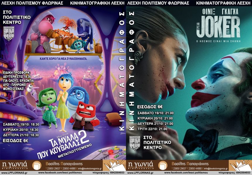 Η φετινή κινηματογραφική χρονιά αρχίζει αυτό το Σάββατο 19/10 με δύο ταινίες: την ταινία κινουμένων σχεδίων “ΤΑ ΜΥΑΛΑ ΠΟΥ ΚΟΥΒΑΛΑΣ 2” και την κοινωνική περιπέτεια “JOKER: ΤΡΕΛΑ ΓΙΑ ΔΥΟ” με τον Χοακίν Φίνιξ και τη Lady Gaga!