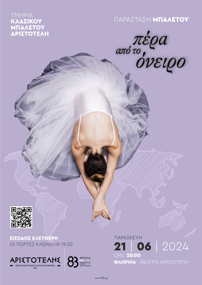 Παράσταση του Τμήματος Κλασικού Μπαλέτου του Φ.Σ.Φ. «Ο Αριστοτέλης», την Παρασκευή 21 Ιουνίου 2024, στο θέατρο του συλλόγου, στις 20:00 με αφορμή τη λήξη των μαθημάτων περιόδου 2023-2024.