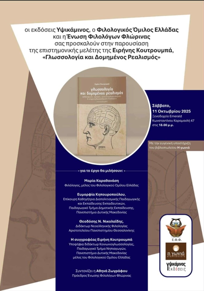 ΕκδηλώσειςΠολιτισμόςΠαρουσίαση επιστημονικής μελέτης της Ειρήνης Κουτρουμπά “Γλωσσολογία και Δομημένος Ρεαλισμός” Τρίτη 7 Οκτωβρίου, 2025 20:07 florinapress.gr SHARE Ίσως να ενδιαφέρει ... Συγχαρητήριο μήνυμα του Αριστοτελείου Εκπαιδευτηρίου στον Ευάγγελο Ρασπόπτση Ο Γιώργος Μουρατίδης πέτυχε την υψηλότερη βαθμολογία στις πανελλαδικές εξετάσεις στη Φλώρινα Η Γ.Ε.Φλώρινας τιμήθηκε για την συμβολή της στον εθελοντισμό και τα κοινά του Δήμου Φλώρινας Μηνιαία επιμορφωτική συνάντηση των εθελοντών και μελών του τμήματος ΕΕΣ Φλώρινας Πένθιμο αγγελτήριο: Κηδεία της Αικατερίνης Νάντσιου Share Ακολουθήστε μας8.4kFollowersLikeΤελευταία νέα Αγανακτισμένοι αγρότες : Ως εδώ, η κατάσταση δεν πάει άλλο Κοινωνία Πέμπτη 4 Δεκεμβρίου, 2025 Επισκέψεις Κινητών Μονάδων Υγείας σε απομακρυσμένες Κοινότητες του Δήμου Αμυνταίου Κοινωνία Πέμπτη 4 Δεκεμβρίου, 2025 Ευχαριστήρια επιστολή του Πειραματικού Σχολείου Φλώρινας προς το Κέντρο Περιβαλλοντικής Εκπαίδευσης & Αειφορίας Μελίτης Κοινωνία Πέμπτη 4 Δεκεμβρίου, 2025 Πωλείται Γερμανικός λέβητας ξύλου Κοινωνία Πέμπτη 4 Δεκεμβρίου, 2025