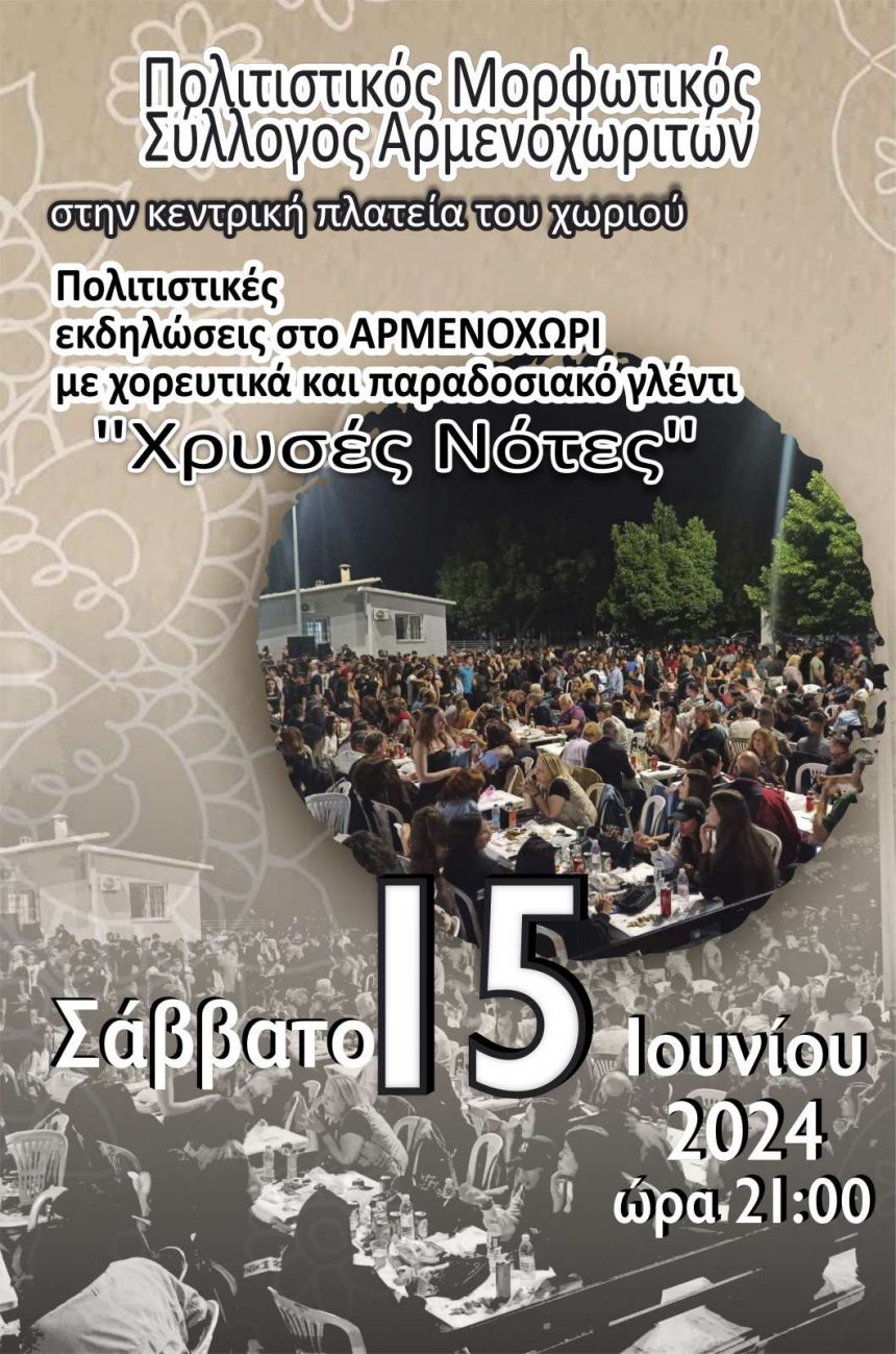 Η Τοπική Κοινότητα Αρμενοχωρίου, η Εκκλησία της Ενορίας και ο Π. Μ. Σ. Αρμενοχωριτών σας προσκαλούν στις εκδηλώσεις που συνδιοργανώνουν με τον Δήμο Φλώρινας και θα γίνουν στις 15, 19 και 20 Ιουνίου 2024 στο Αρμενοχώρι Φλώρινας προς τιμήν της εορτής της ανακομιδής των λειψάνων του Οσίου Ναούμ προστάτη του χωριού. Το πρόγραμμα θα έχει ως εξής: