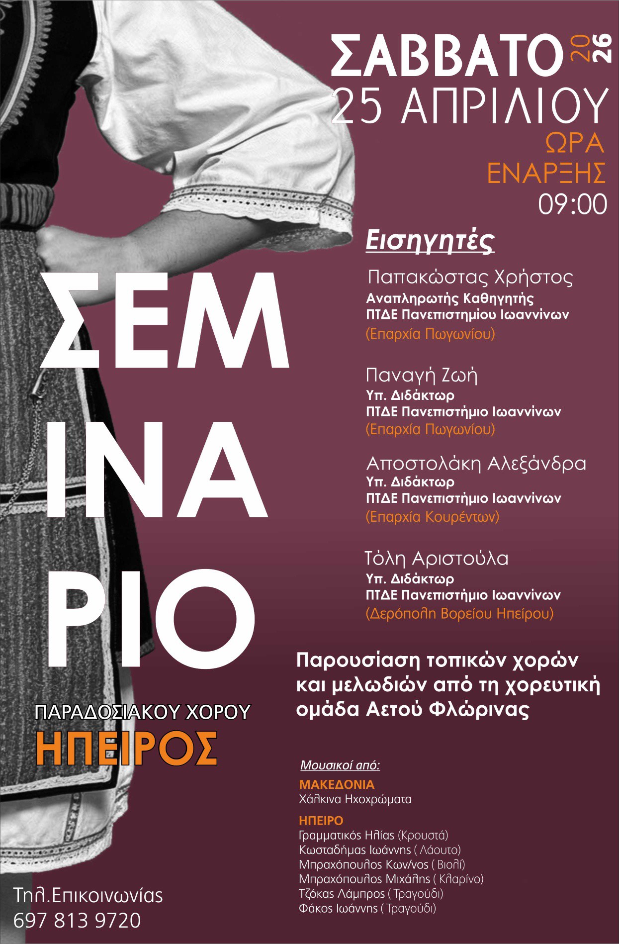 Ταυτόχρονα στο σεμινάριο θα γίνει παρουσίαση τοπικών χορών και μελωδιών από την χορευτική ομάδα του ΜΠΣ Αετού