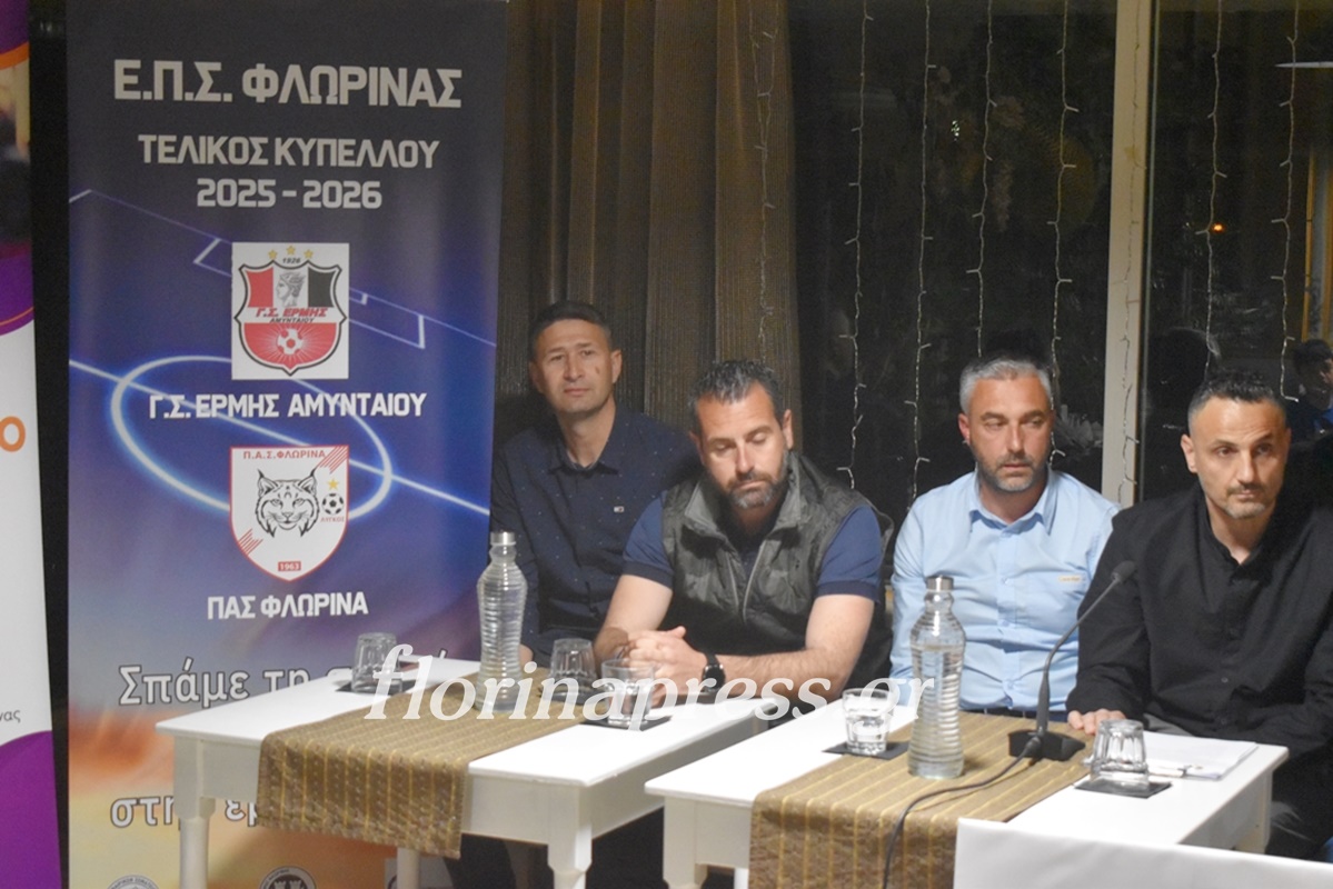 Τον λόγο στη συνέχεια πήραν εκπρόσωποι των δυο φιναλίστ, εκ μέρους του Ερμή Αμυνταίου, ο Κώστας Μαργιορίδης και εκ μέρους του ΠΑΣ Φλώρινα, ο προπονητής Νικόλαος Βασιλείου και ο αρχηγός κ. Γυφτόπουλος, οι οποίοι επιβεβαίωσαν το πολύ καλό κλίμα που υπάρχει και στις δύο ομάδες εν όψει της αναμέτρησης μεταξύ των δύο ιστορικότερων ποδοσφαιρικών συλλόγων της Π.Ε. Φλώρινας.