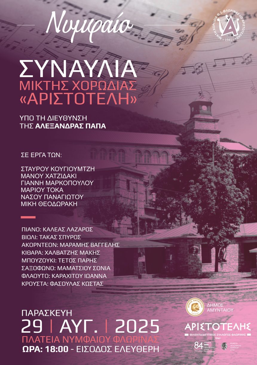Παρασκευή, 29 Αυγούστου 2025, στην πλατεία του Νυμφαίου στις 6:00 μ.μ. –