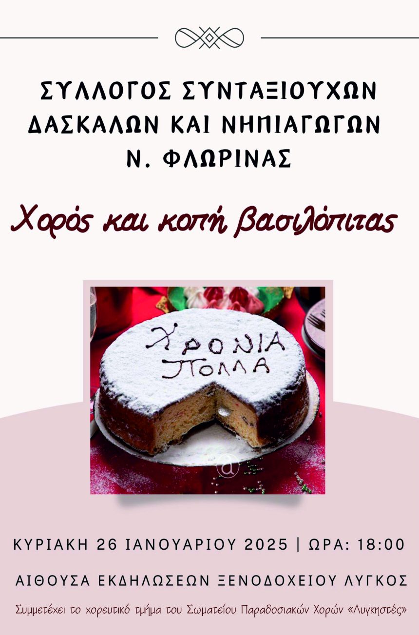 Χορός και κοπή βασιλόπιτας του Συλλόγου Συνταξιούχων δασκάλων και νηπιαγωγών Φλώρινας