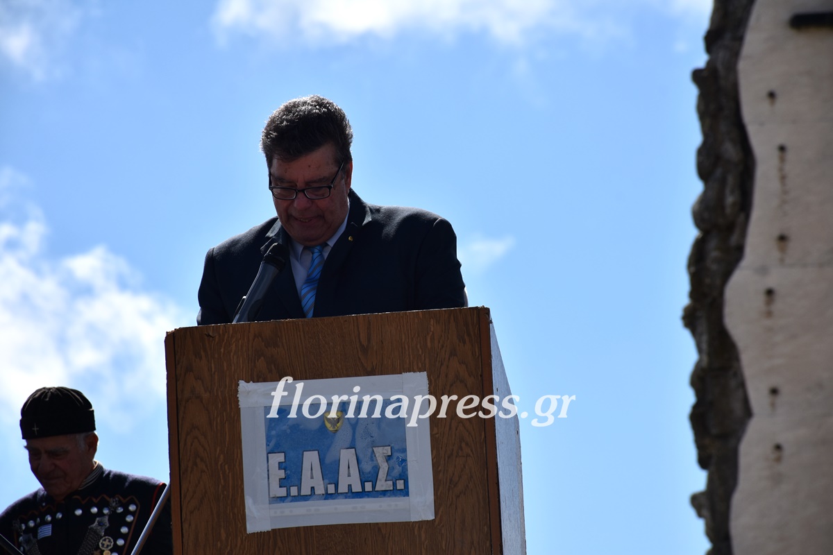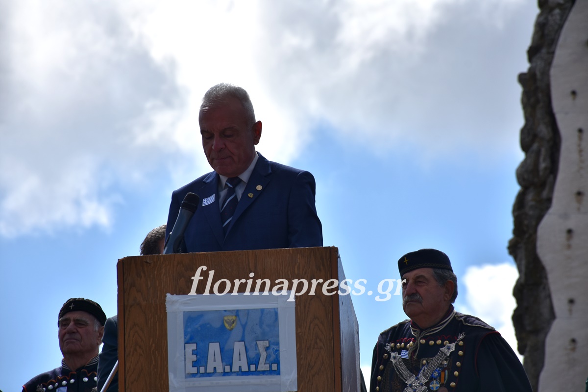 Χαιρετισμό έκανε ο Πρόεδρος της ΕΑΑΣ Καστοριάς Χρυσόστομος Δούκης, ο Πρόεδρος της ΕΑΑΣ Ελλάδος Στρατηγός Ιωάννης Δεβούρος, ο Πρόεδρος της ΕΑΑΑ Αντιπτέραρχος ε.α Παναγιώτης Δημητριάδης και για το ιστορικό της ημέρας μίλησε ο Υπτγός (ΠΖ) ε.α. Μπολώσης Χρήστος. Την εκδήλωση παρακολούθησαν η Βουλευτής Καστοριάς Μαρία Αντωνίου η οποία κατέθεσε και στεφάνι και παρευρέθησαν ο π. Βουλευτής Καστοριάς Ζήσης Τζηκαλάγιας και ο π. Βουλευτής Φλώρινας Στάθης Κωνσταντινίδης. Κατάθεση στεφάνων έκαναν και οι ενώσεις αποστράτων Φλώρινας και Καστοριάς οι ενώσεις εφέδρων, ενώσεις αποστράτων αστυνομίας και σωμάτων ασφαλείας.