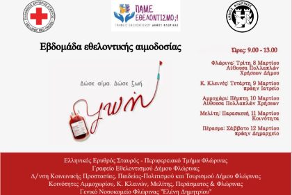 Εβδομάδα εθελοντικής αιμοδοσίας στον Δήμο Φλώρινας