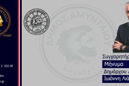 Συγχαρητήριο μήνυμα Δημάρχου Αμυνταίου προς το νέο Διοικητικό Συμβούλιο του Συλλόγου Αμυνταιωτών, Περιχώρων και Φίλων Θεσσαλονίκης