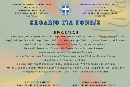 Πρόσκληση στην 3η Συνάντηση του Ενημερωτικού/Επιμορφωτικού Κύκλου «Σχολείο για Γονείς»