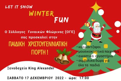 Σύλλογος Γυναικών Φλώρινας (ΟΓΕ) σας καλεί στην ΠΑΙΔΙΚΗ ΧΡΙΣΤΟΥΓΕΝΝΙΑΤΙΚΗ ΓΙΟΡΤΗ που διοργανώνει…