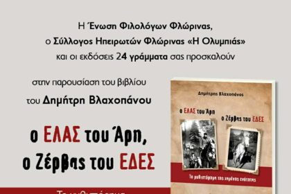 Παρουσίαση του βιβλίου “Ο ΕΛΑΣ του Άρη, ο Ζέρβας του ΕΔΕΣ” στη Φλώρινα