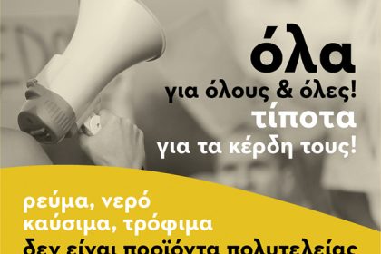 ΑΝΤΑΡΣΥΑ: Δημόσια αγαθά: Όλα για όλες & όλους – Τίποτα για τα κέρδη τους!