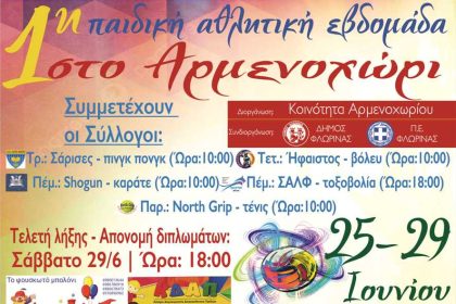 Η κοινότητα Αρμενοχωρίου διοργανώνει την 1η παιδική αθλητική εβδομάδα