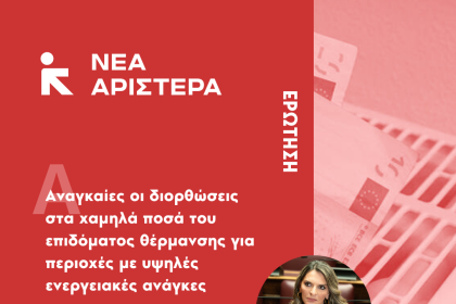 Ερώτηση Βουλευτών της Νέας Αριστεράς: «Αναγκαίες οι διορθώσεις στα χαμηλά ποσά του επιδόματος θέρμανσης για περιοχές με υψηλές ενεργειακές ανάγκες»