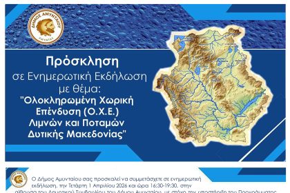 Πρόσκληση σε Ενημερωτική Εκδήλωση με θέμα: Ολοκληρωμένη Χωρική Επένδυση (Ο.Χ.Ε.) Λιμνών και Ποταμών Δυτικής Μακεδονίας
