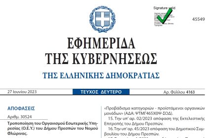 Νέος Οργανισμός Εσωτερικής Υπηρεσίας του Δήμου Πρεσπών