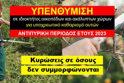 Υπενθύμιση υποχρέωσης καθαρισμού οικοπέδων και ακάλυπτων χώρων από ιδιώτες