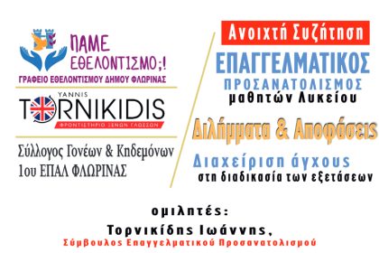 Ημερίδα – ανοικτή συζήτηση για τον επαγγελματικό προσανατολισμό των μαθητών λυκείου και τη διαχείριση άγχους