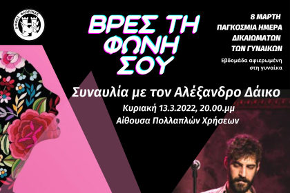 Στις 8 Μαρτίου, στην Αίθουσα Πολλαπλών Χρήσεων, στις 19.00 μ.μ., γιορτάζουμε την…