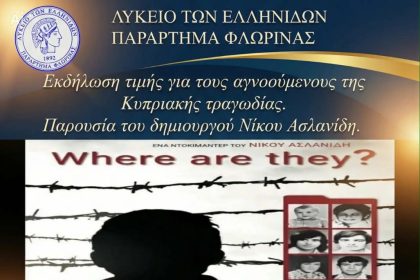 Σας προσκαλεί στην εκδήλωση με θέμα τους αγνοούμενους από την τουρκική εισβολή…
