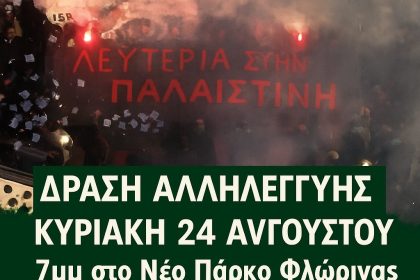 Δράση αλληλεγγύης την Κυριακή 24 Αυγούστου ώρα 7μμ στο Νέο Πάρκο Φλώρινας