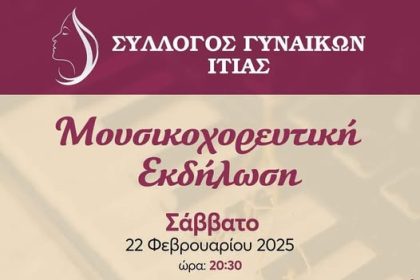 Σας προσκαλούμε να παρευρεθείτε στην εκδήλωση που διοργανώνει ο Σύλλογος Γυναικών Ιτιάς…