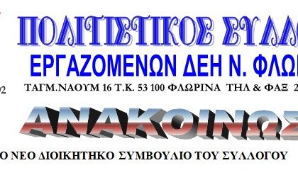 Το Δ.Σ του ΠΟΛΙΤΙΣΤΙΚΟΥ ΣΥΛΛΟΓΟΥ ΕΡΓ. ΔΕΗ Ν. ΦΛΩΡΙΝΑΣ ενημερώνει τα μέλη…