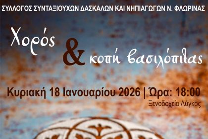 Ετήσιος χορός και κοπή βασιλόπιτας του Συλλόγου Συνταξιούχων Δασκάλων και Νηπιαγωγών Φλώρινας