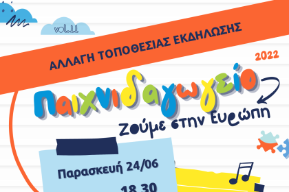 Αλλαγή τοποθεσίας της εκδήλωσης Παιχνιδαγωγείο 2022