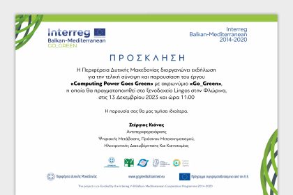 Η τελική εκδήλωση της Περιφέρειας Δυτικής Μακεδονίας, στο πλαίσιο υλοποίησης του έργου «Computer Power Goes Green» – «GO-GREEN»